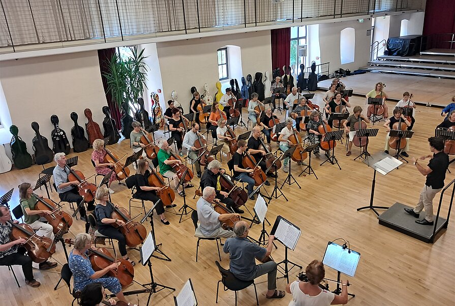 Nutzen Sie diese einmalige Gelegenheit, gemeinsam mit anderen Cellisten und Cellistinnen in einem großen Orchester zu spielen! Unter der Anleitung eines erfahrenen Dozententeams erarbeiten Sie in intensiven Tuttiproben ein vielfältiges Repertoire – von der Renaissance bis hin zu Rock & Pop.